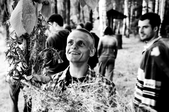 Muži připravují dřevo
